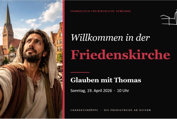 Herzliche Einladung zur dritten Predigt in unserer Reihe "Charakterköppe" - am Sonntag 19.04.26 heißt es "Glauben mit Thomas". Der Gottesdienst beginnt um 10.00 Uhr Wenn Du mehr Information & Termine zu Veranstaltungen von und aus unserer Gemeinde erhalten möchtest, kannst…
