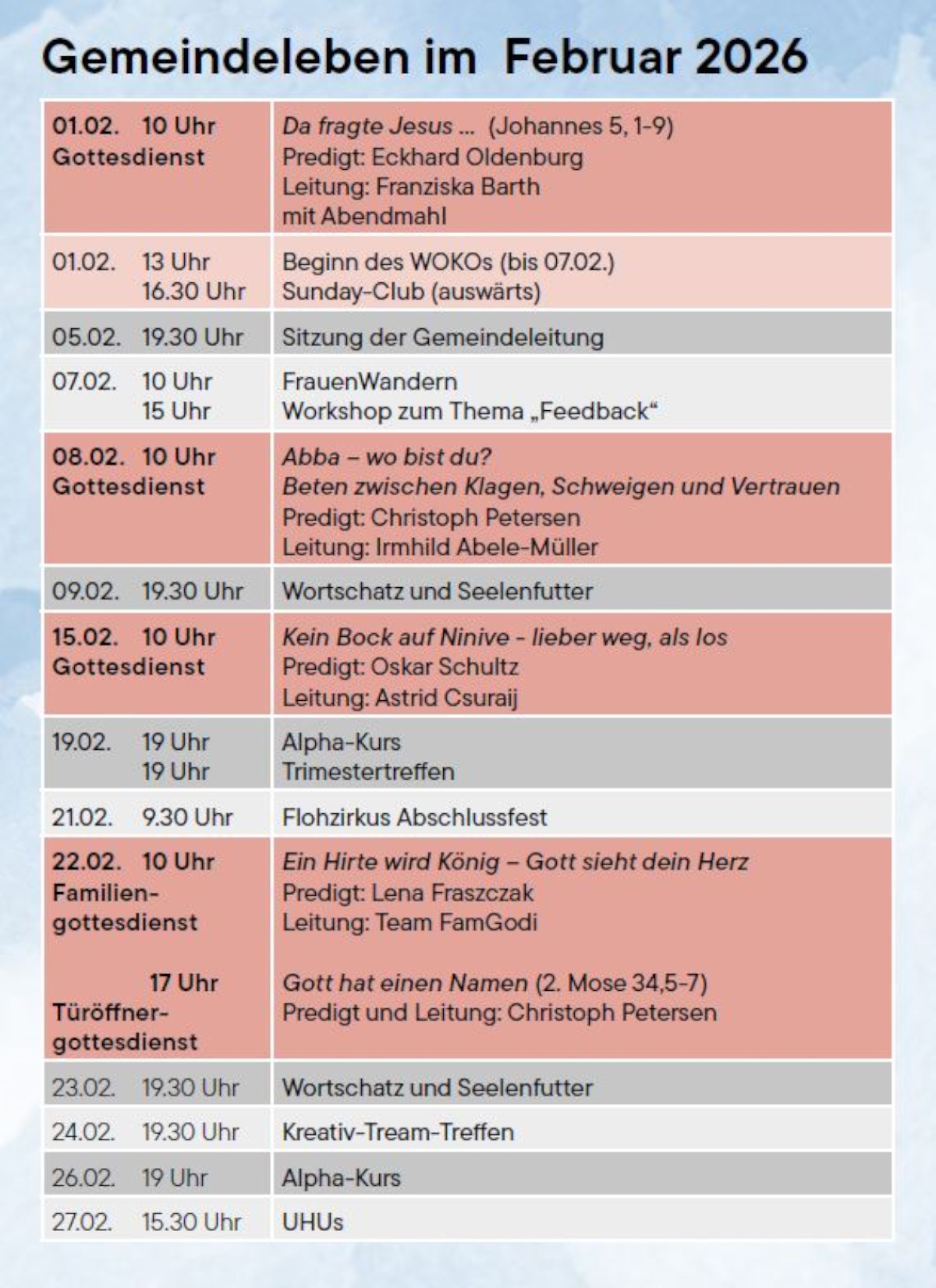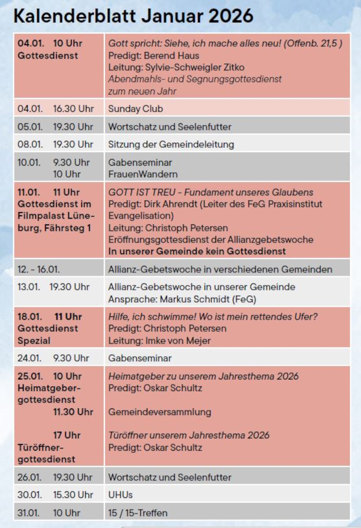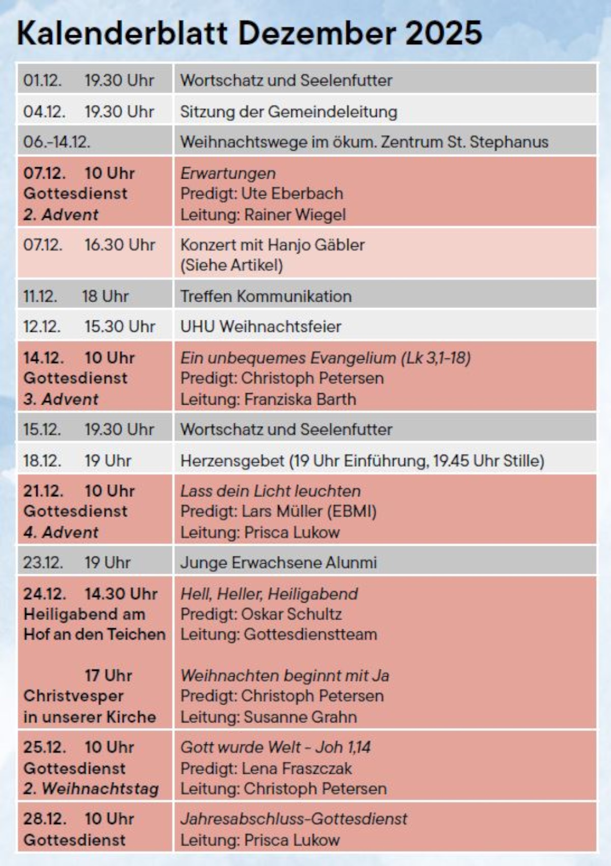 Übersicht Gottesdienstangebot