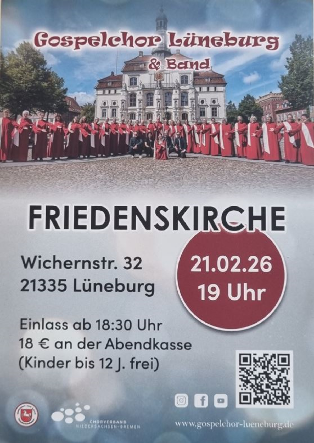 Wir stellen dem Gospel-Chor Lüneburg unsere Gemeinderäume für ein Konzert zur Verfügung. Hier geht es zu der Internetseite des Veranstalters. …[mehr]